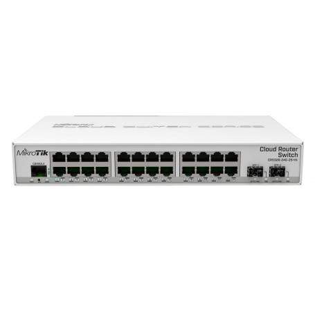 CRS326-24G-2S+IN provides all the basic functionality for a managed switch, and even more: port-to- port forwarding, MAC filtering, VLAN configuration, traffic mirroring, bandwidth limitation and even adjust some MAC and IP header fields. SFP+ cage supports both 1.25G SFP and 10G SFP+ modules.