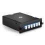 Due to the MPO-12 also supporting MPO-8 fiber systems, it is also ideal for 8-fiber parallel multimode optical transceivers applications, such as 40G QSFP+ SR4/CSR4, 100G QSFP28 SR4 optics connection.